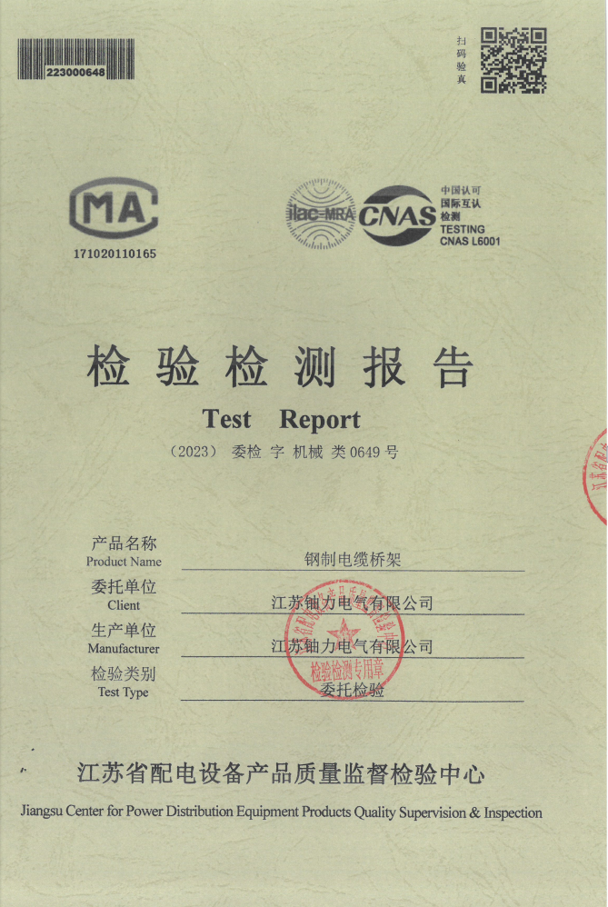 鋼制電纜橋架檢驗檢測報告0649號